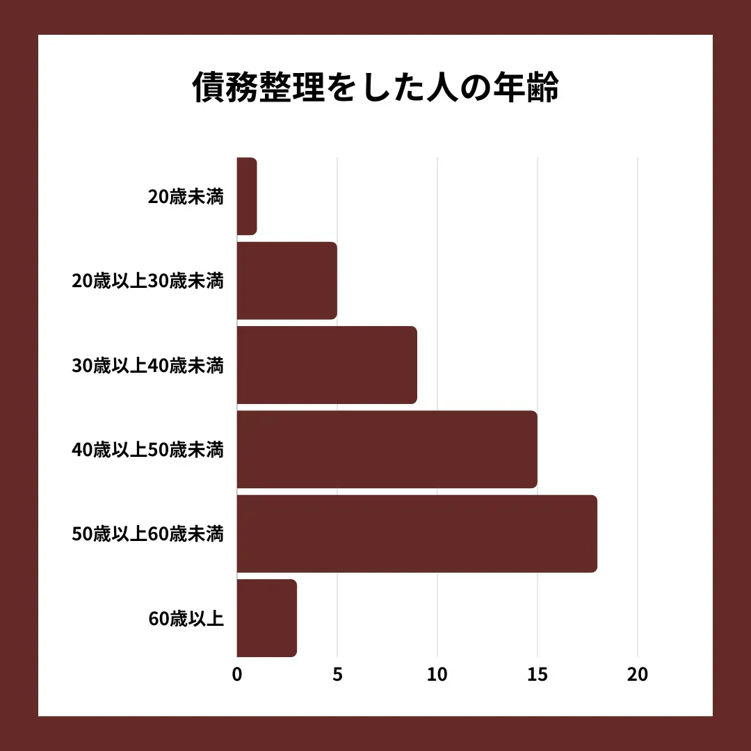 独自調査の結果、債務整理をした人の年齢は「50歳以上60歳未満」が最も多く、次いで「40歳以上50歳未満」が多くなっています。