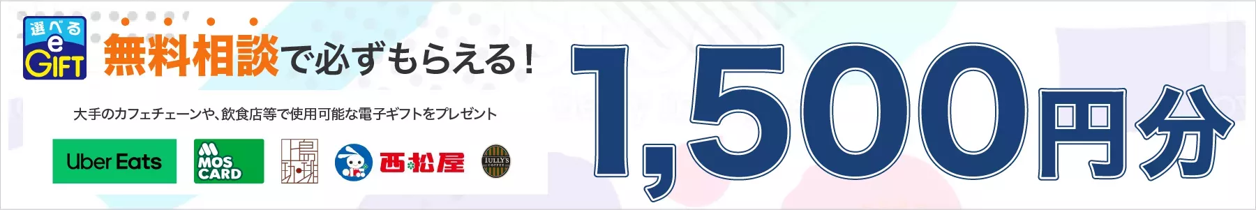 - キャンペーン:無料相談で1500円分のギフトをプレゼント