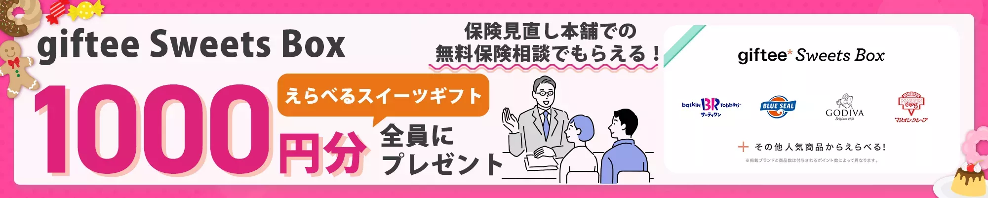 ただいま新規の保険or保険の見直し相談(FP相談+保険相談)をセットでされた方には選べる電子ギフト1,500円分がもらえるので興味のある方は是非無料相談を申し込んでみてください。