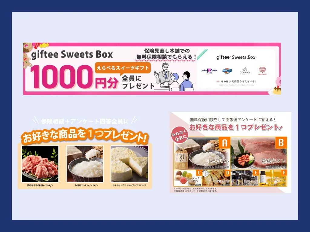 - キャンペーン:無料相談でもれなくプレゼントがもらえる