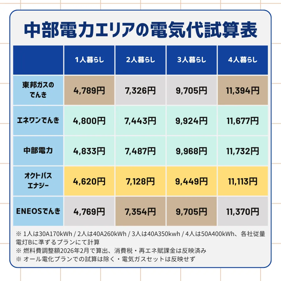 | 1人 | (中部電力の方がお得) |