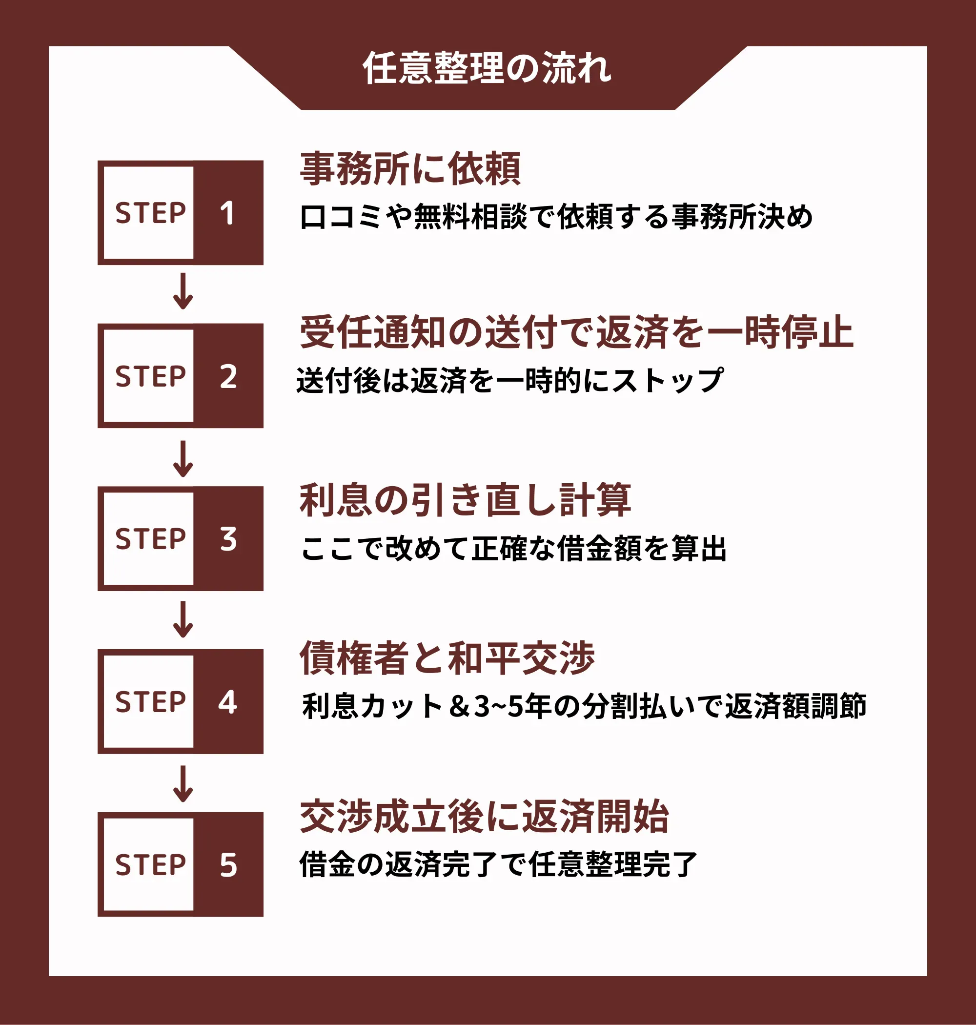 任意整理は、債務整理の中でも比較的リスクが低く、家族や職場に知られにくい方法として知られています。裁判所を通さずに弁護士や司法書士が債権者と直接交渉するため、手続きのハードルが低いのが特徴です。