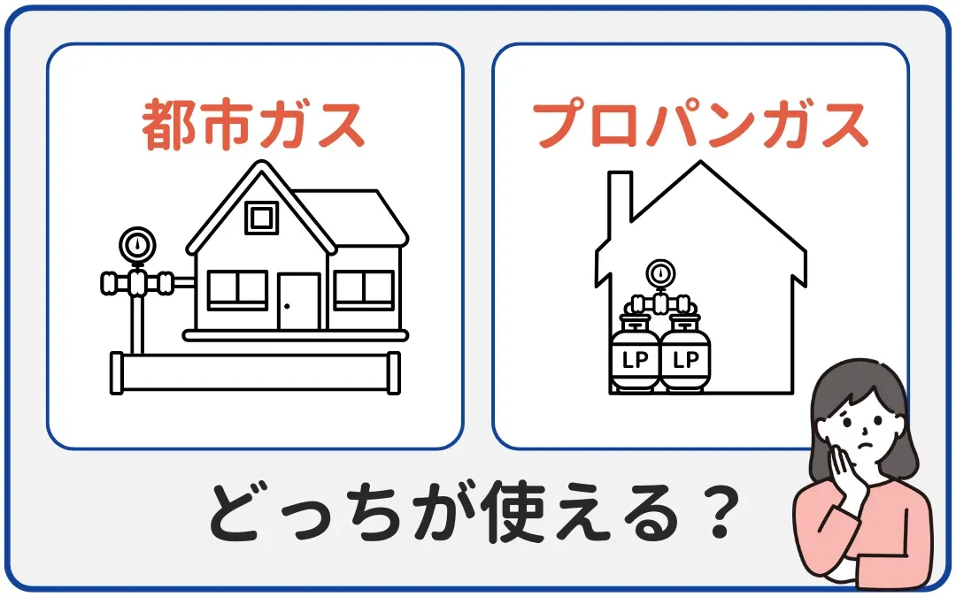 都市ガスが利用できない地域ではプロパンガス(LPガス)を選択します。また同市内であっても配管が届かない場合は都市ガス供給ができない場合もあります。これから引越しの場合は、必ず契約前にその利用場所が都市ガスかプロパンガスか確認しましょう。