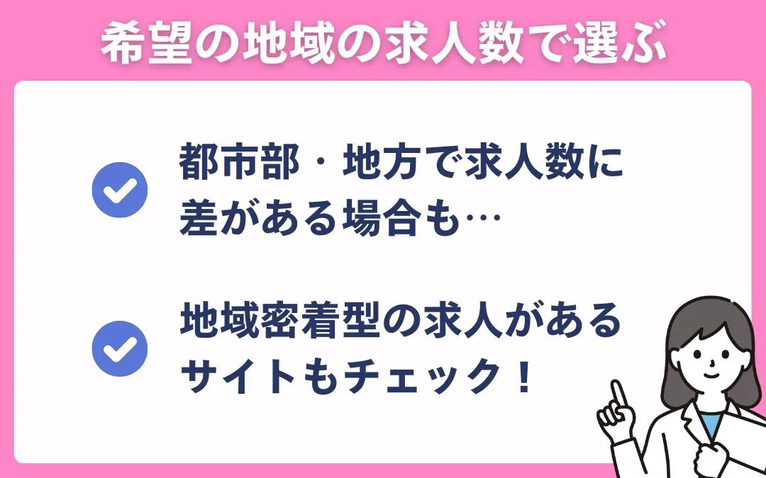 転職サイトを選ぶときには、自分の住んでいる地域の求人が多いサイトを選びましょう。