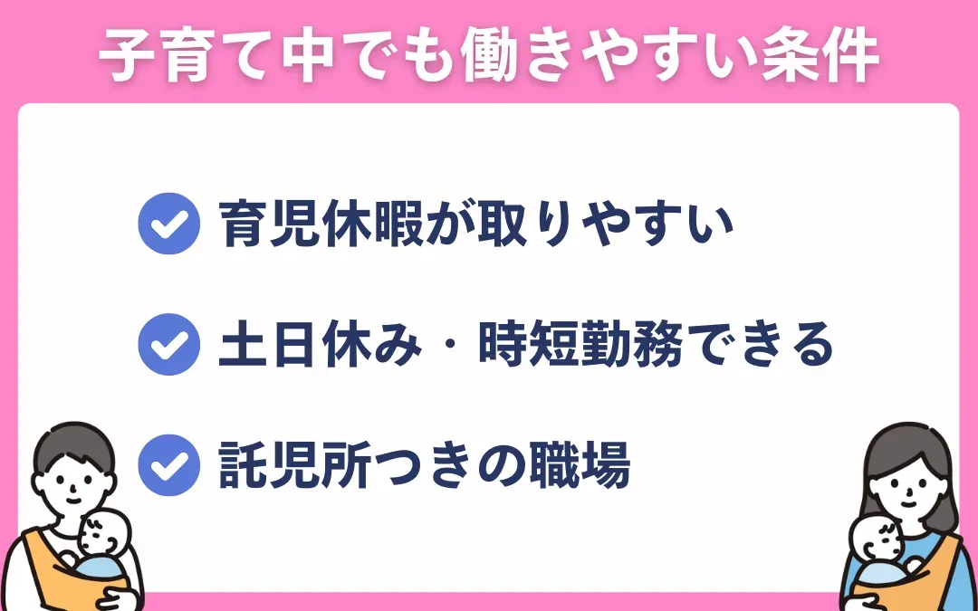 - 子育てしながらでも働きやすい求人があるかで選ぶ