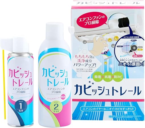 ファンの奥のカビを効果的に除去するエアコンクリーナーです。もちもちの泡がしっかり汚れに密着し、ごっそり強力に落とします。跳ね上げ式ロングノズルでより掃除がやりやすくなっているのが特徴です。すすぎ剤で気になることの多いエタノール臭がしないのもポイントです。