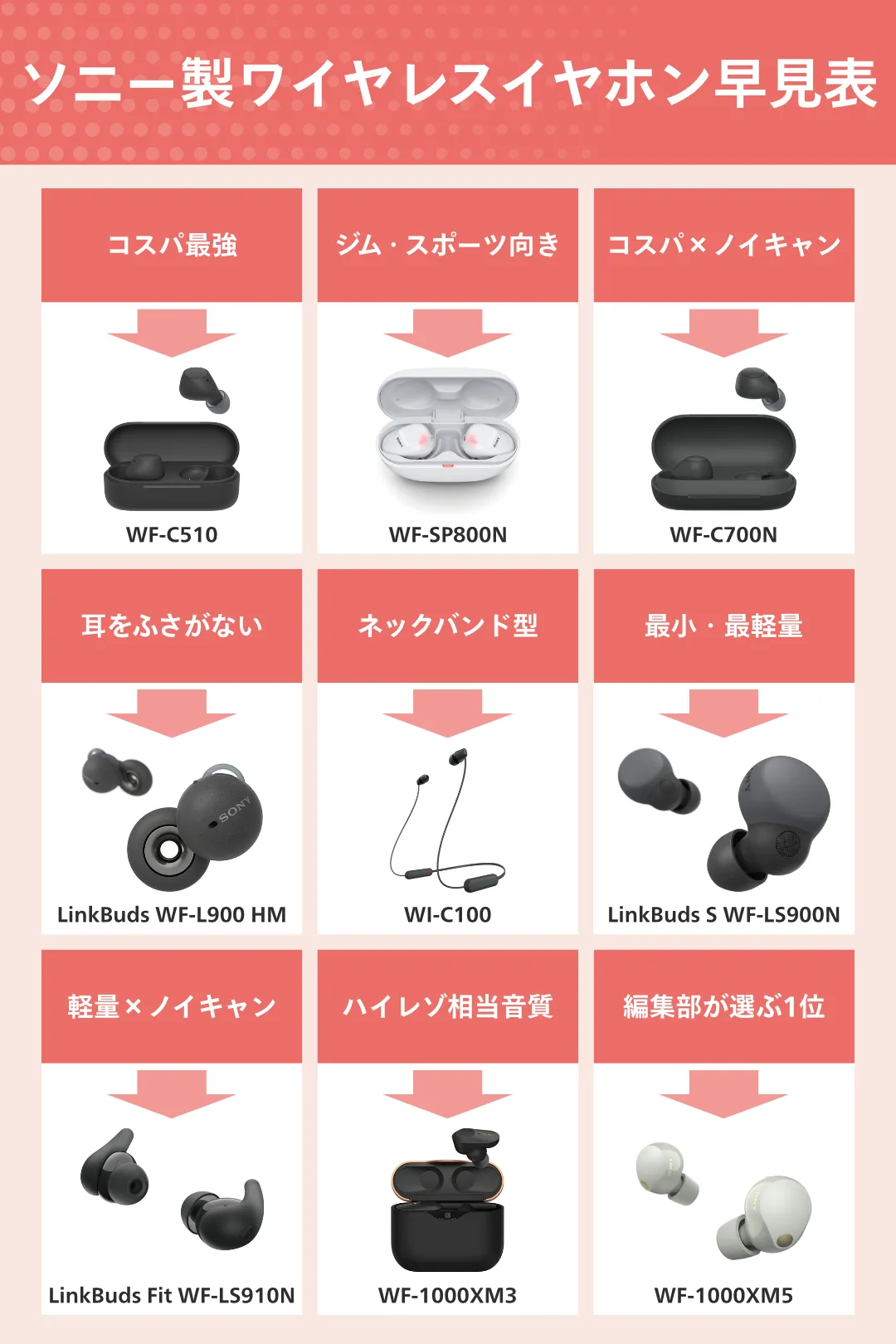 一方、3万円は手が出ない方も「何を重視するか」を明確にすることで、自分に合った一台が選べます。ソニーのワイヤレスイヤホン選びでチェックすべきポイントは、ズバリ5点です。