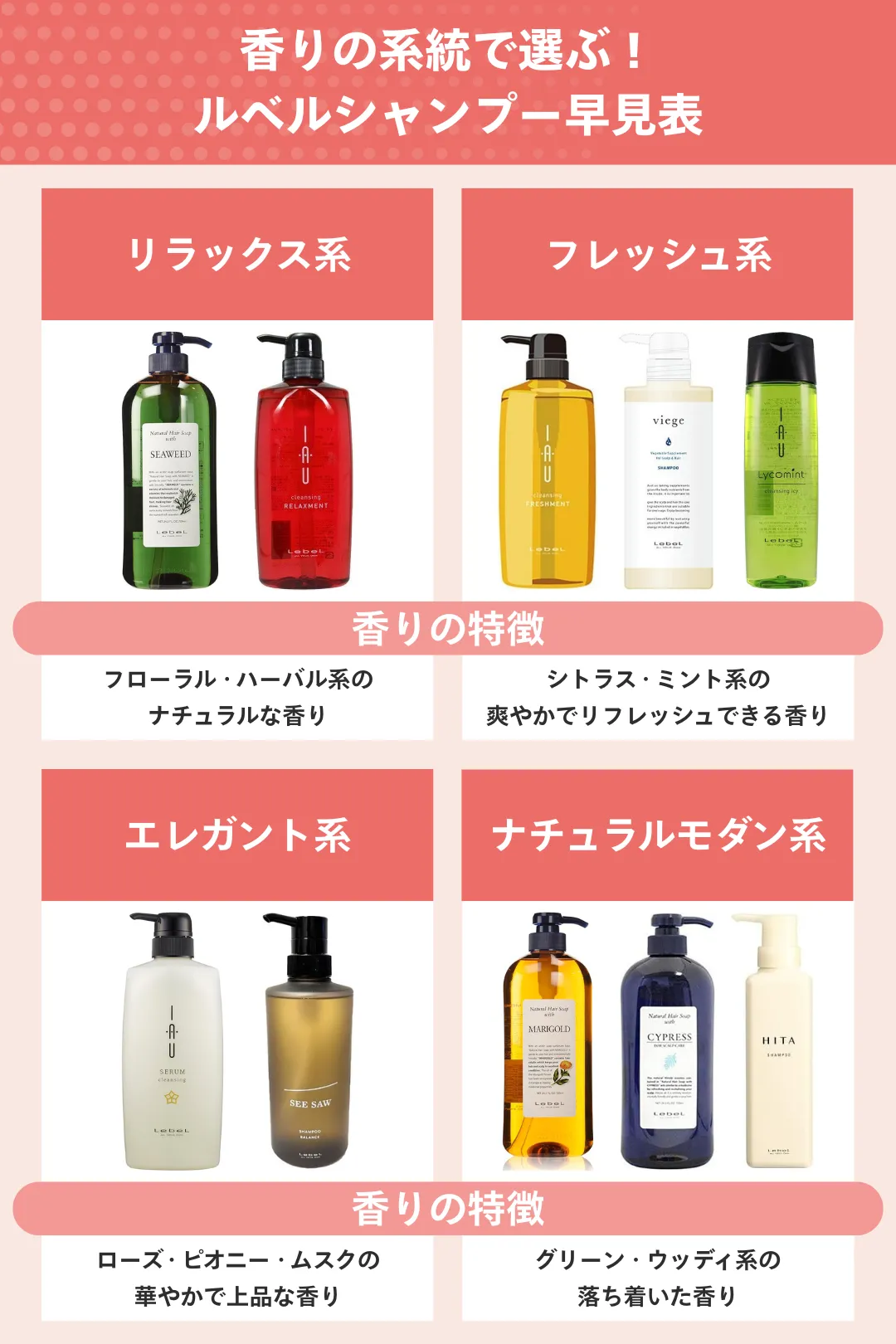 ルベルでは、植物由来の成分を活かした「グリーンフローラル」や「ハーブ」系の爽やかな香りを多くラインナップしています。甘ったるさが少なく、サロン帰りのようなすっきりとした清潔感を求める方や、ナチュラルでユニセックスな香りが好きな方に特におすすめです。