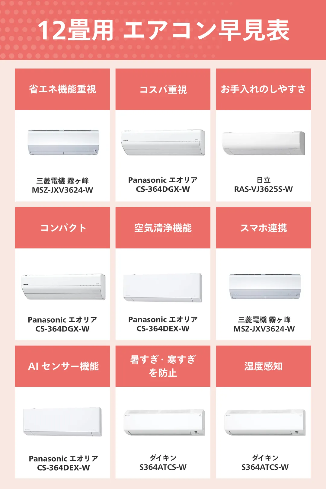 本記事では、どれを選ぶべきか迷っている方に向け、「省エネ」「静音」「お手入れ」といった9つのポイント別に最適な機種をピックアップしました。重視したいポイントを考えながら、10年使える一台を選んでいきましょう。