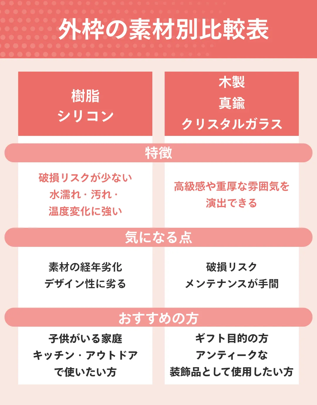 高級感や重厚感を求める方は木製・金属・ガラス