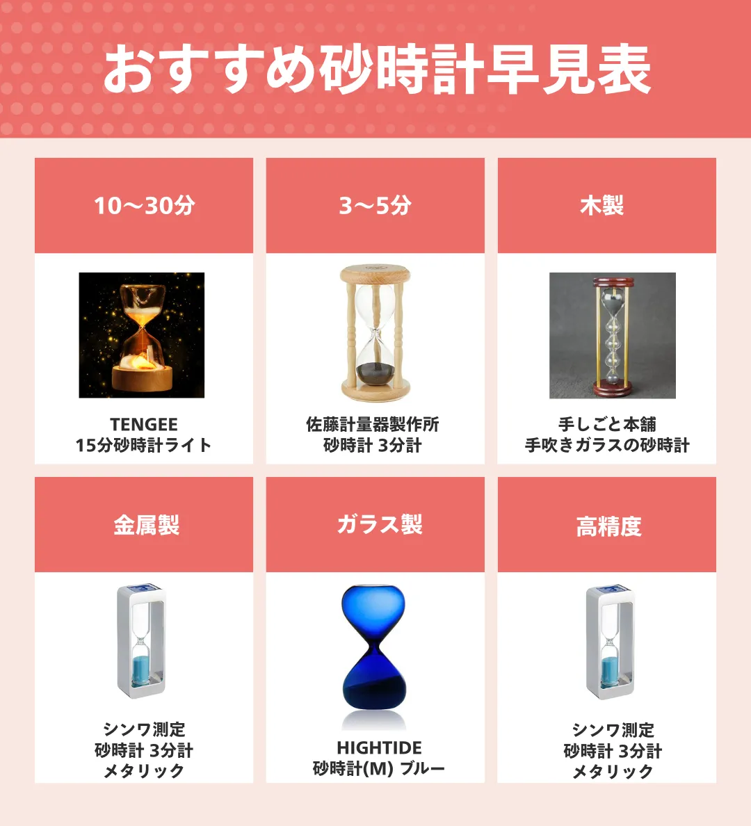 おすすめ砂時計早見表はこちら