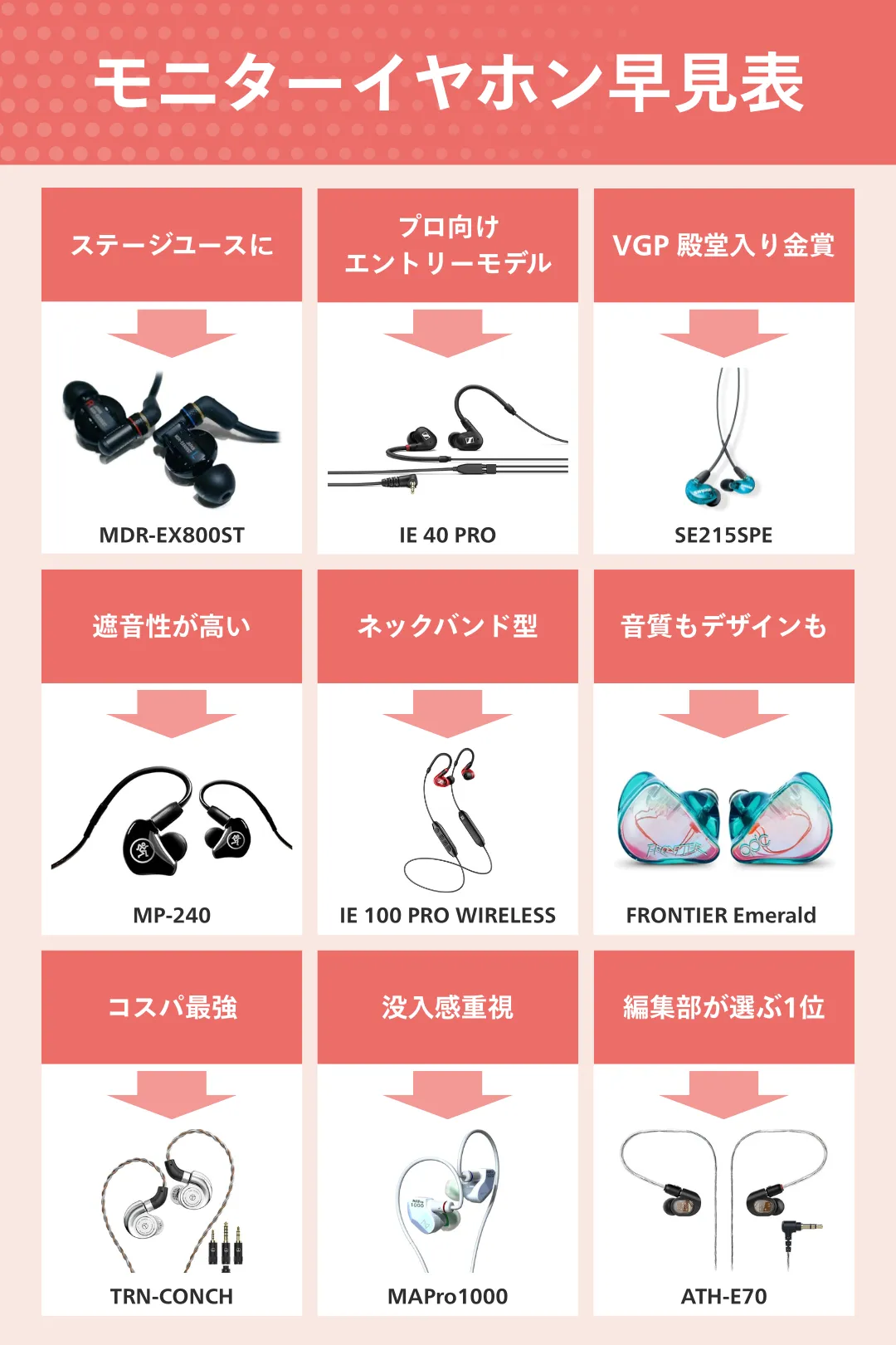 モニター用イヤホンからお気に入りを選んで音を楽しもう