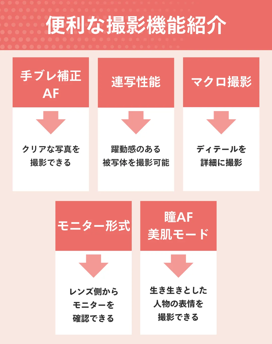 | 便利機能 | 高速AF・フレーミングアシストなど |
