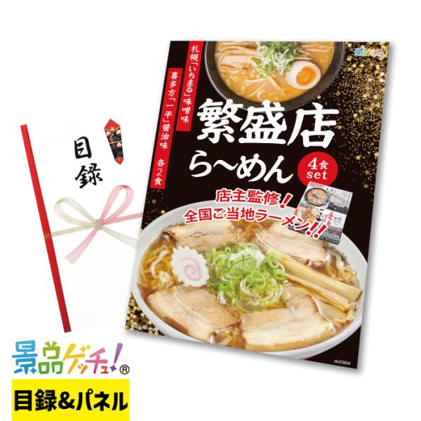 札幌濃厚味噌ラーメンセットの目録ギフトセットです。盛り上げ用のイベントパネルもついているので、初めてイベントの幹事や司会を行う方にもおすすめです。景品紹介に使用できるキャッチコピー集もついています。