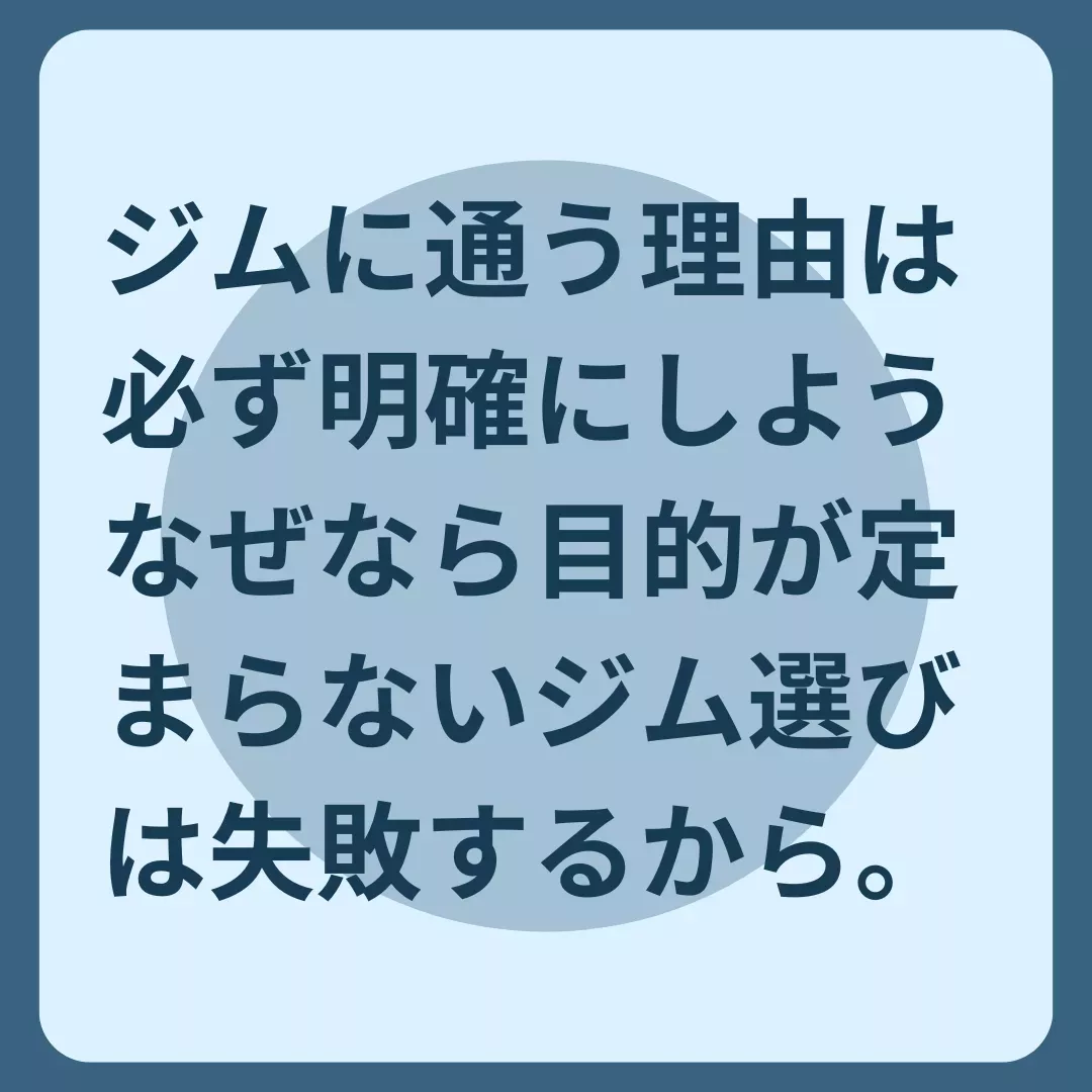 自分がどういう目的でジムに通うのかを明確にしておけば、数多くあるスポーツジムから自分に合ったジムを選びやすくなります。