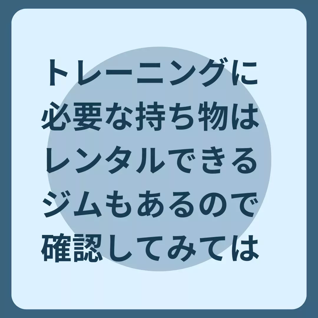 レンタルサービスのあるスポーツジムもあります。レンタルサービスがあると、手ぶらでスポーツジムに通えるため、会社帰りや学校帰りに立ち寄る場合におすすめです。荷物を増やしたくない場合はレンタルの有無も確認してみてくださいね。