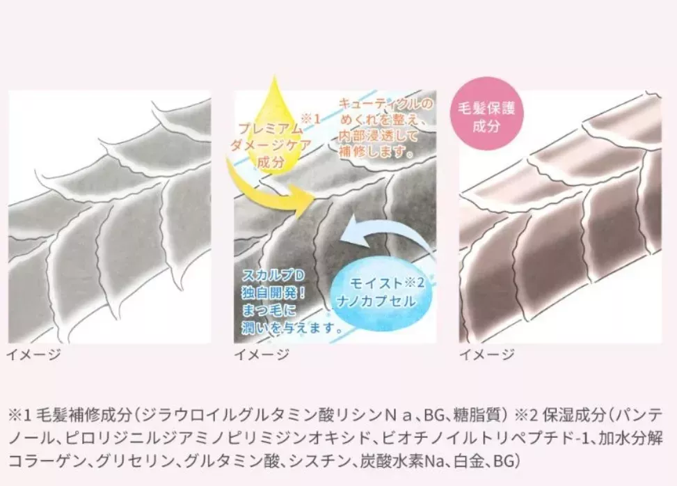 「スカルプDまつ毛美容液 プレミアム」は、「スカルプDまつ毛美容液 ピュア」と比較して毛髪補修成分が4倍(※1)配合されています。さらに、「プレミアムダメージケア成分(※2)」を新たに配合することで、まつ毛を表面と内部の両方からケアし、ダメージを受けにくいまつ毛へと導いてくれます。