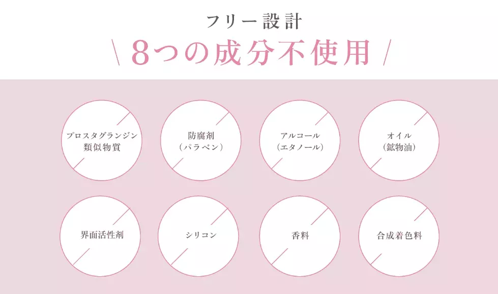 プロスタグランジン類似物質・パラペン・オイル・アルコール・界面活性剤・シリコン・合成香料・合成着色料を使用していない無添加処方なので、デリケートで繊細な目元を優しくケアできます。