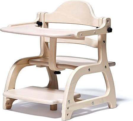 成長に合わせて座板の奥行きを4段階、足置き板の高さを3段階に調節でき、常に足がしっかりと届く正しい姿勢での食事をサポートします。場所を取らないコンパクトな設計ながら、安定感のある木製フレームを採用。テーブルは後ろに回すことができるため、お子様の乗せ降ろしや、テーブルを使わないシーンでも便利です。天然木のぬくもりを感じるデザインが、家族で囲む食卓を優しく彩ります。