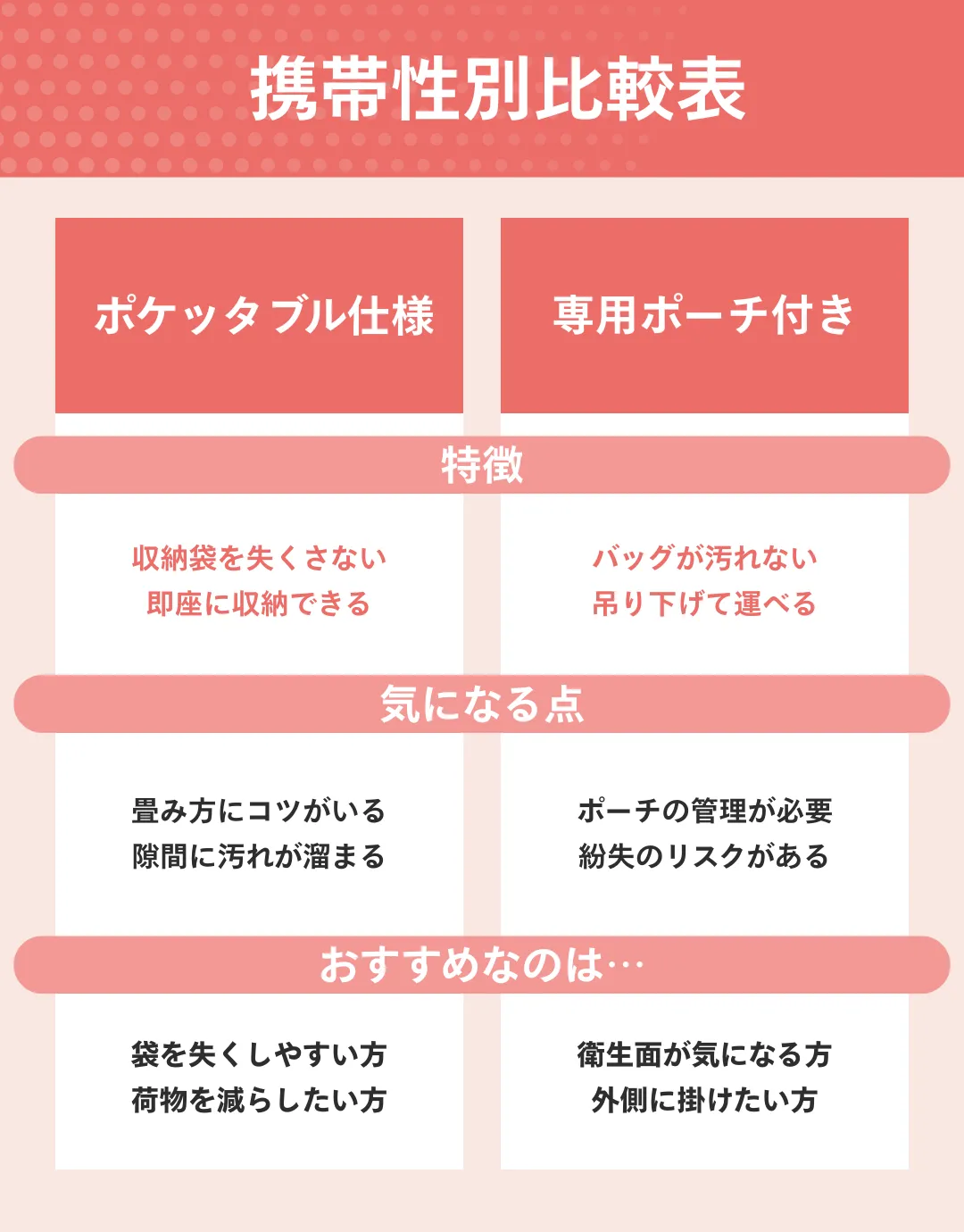 汚れを隔離して衛生的に運びたい方は専用ポーチ付きモデル