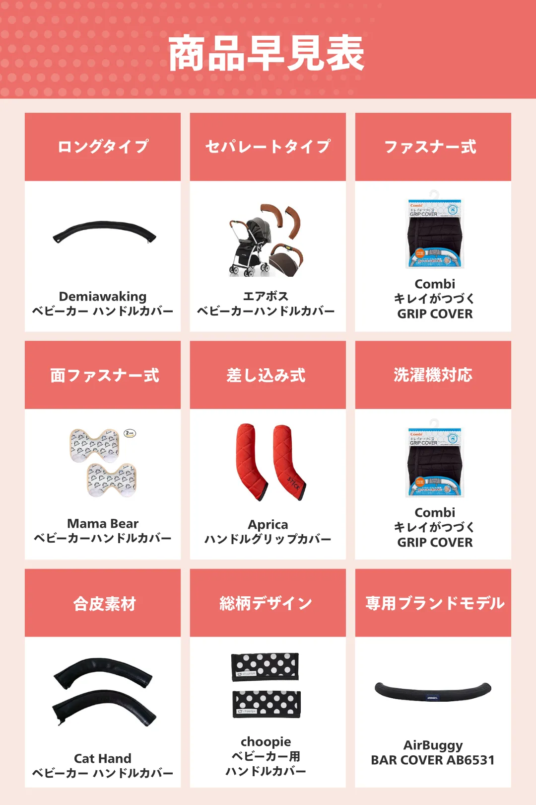 ベビーカー用ハンドルカバーのおすすめ早見表はこちら