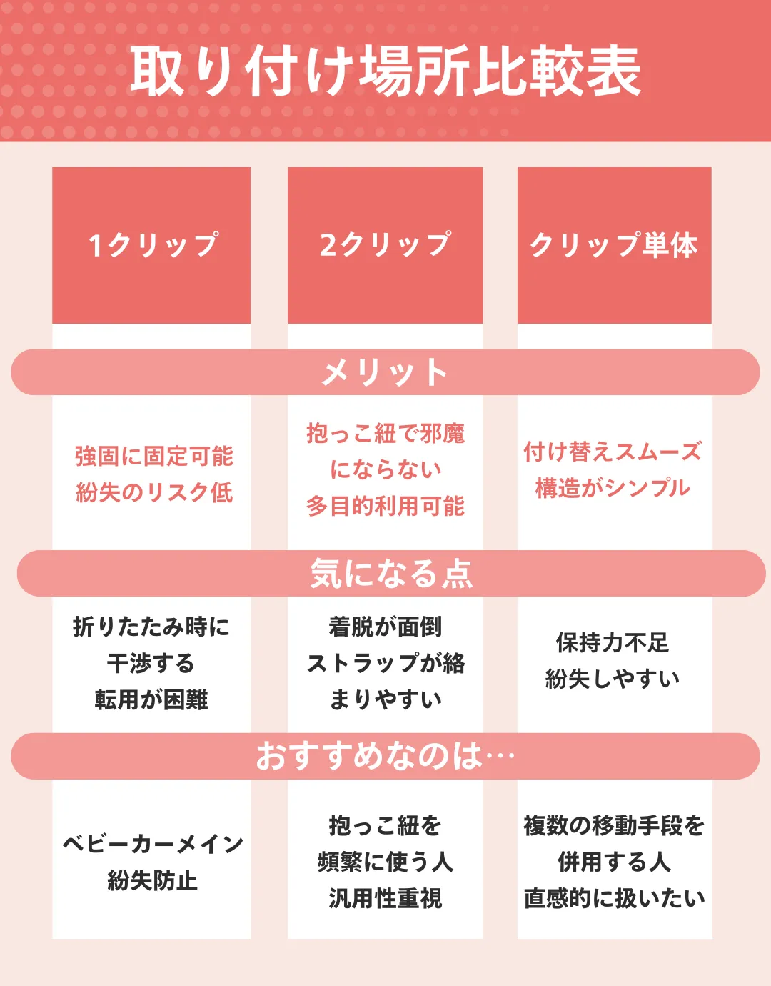 抱っこ紐で使用したいなら両端がクリップ仕様の2クリップが候補