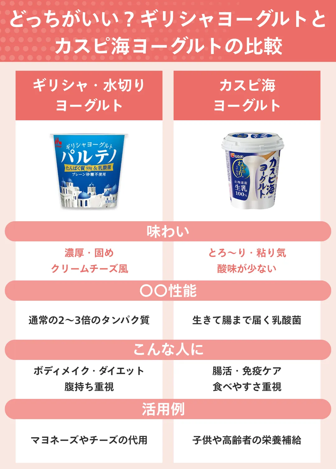 - 濃厚な水切りや粘りのあるカスピ海など食感の好みが合うか