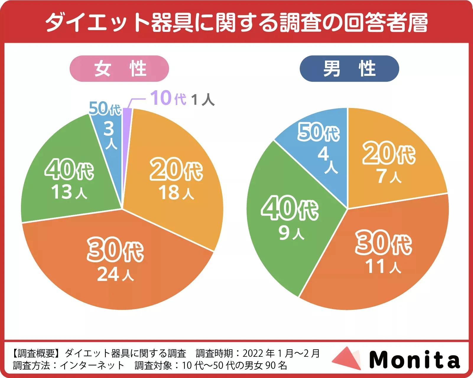 そこで今回は90人の男性・女性にアンケートを実施し、買ってよかったと思えるダイエットグッズ・ダイエットマシーンのおすすめ商品を調査しました。口コミも取り上げ、「本当に痩せる?」という疑問にもお答えします。