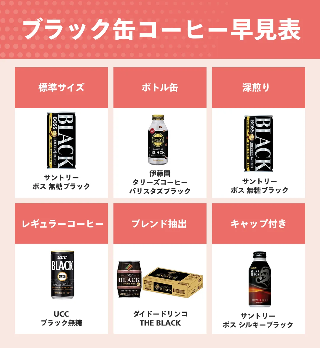 ブラック缶コーヒーは「何を重視するか」を明確にすることで、自分に合った一本が選べます。ブラック缶コーヒー選びでチェックすべきポイントは、ズバリ以下です。