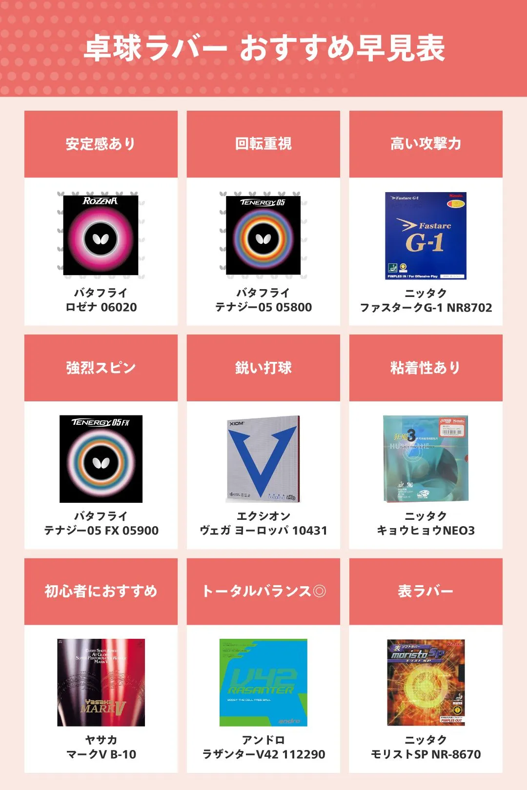 そこで今回は、卓球ラバーの選び方やおすすめ人気ランキング、平均の値段などを紹介します。中学生などの初心者・中級者向け・安くて強いラバーもあるのでぜひ参考にしてください。