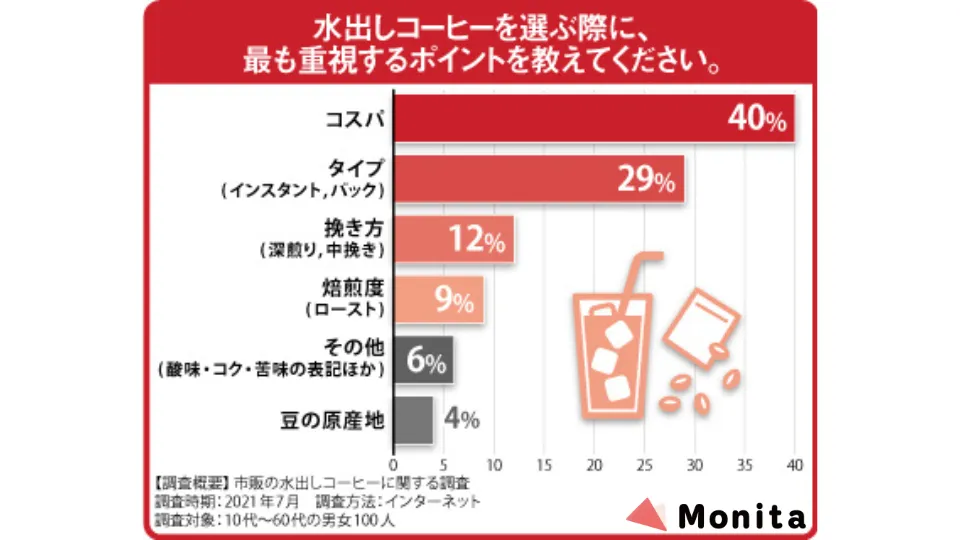 自宅でコーヒーを飲む方はコーヒータイムが習慣付いている場合も多く「コスパ」が気になる方も少なくありません。また水出しコーヒーはパックタイプ・インスタントタイプなどタイプもさまざまです。