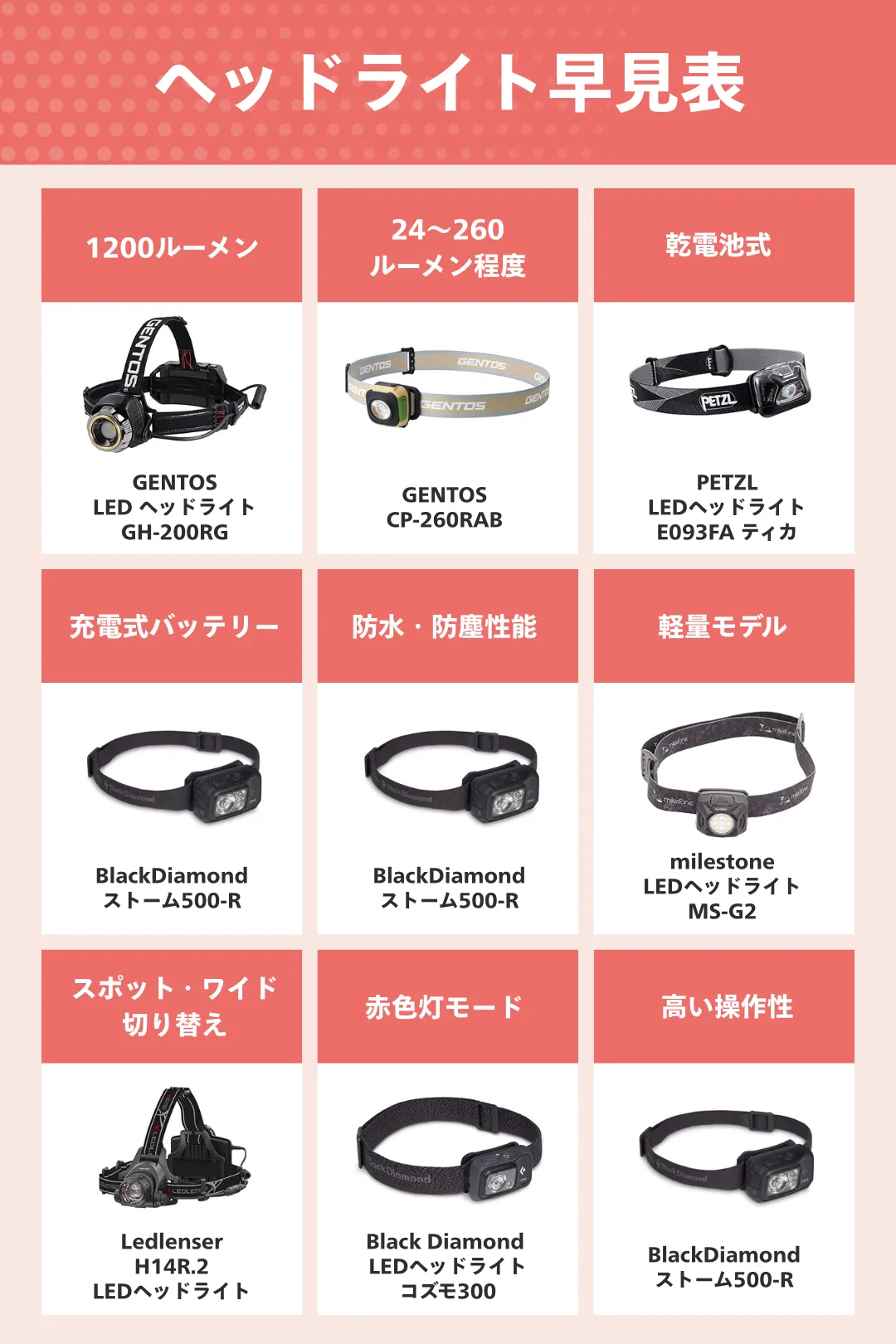 乾電池式ヘッドライトのおすすめ商品比較一覧表