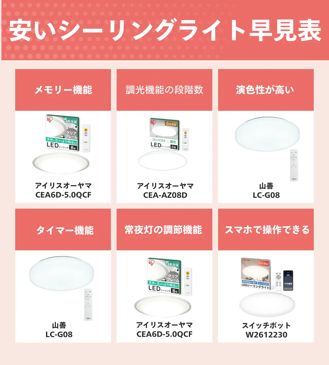 この記事では、読者が後悔しないために、安いシーリングライトを選ぶ際の重要な視点を網羅して解説します。
