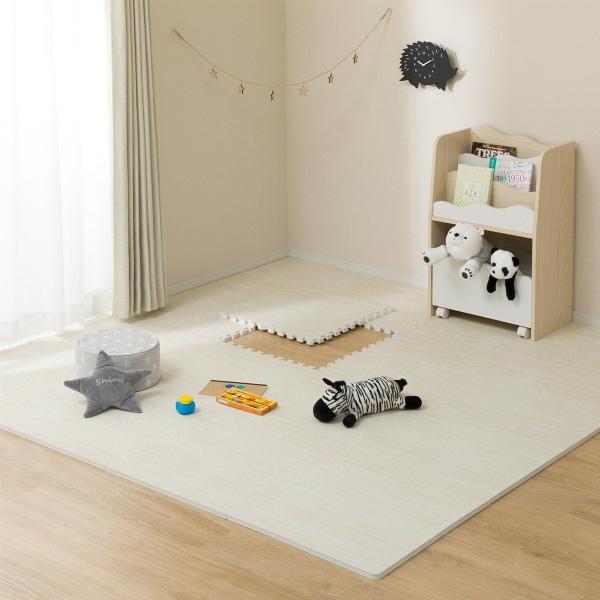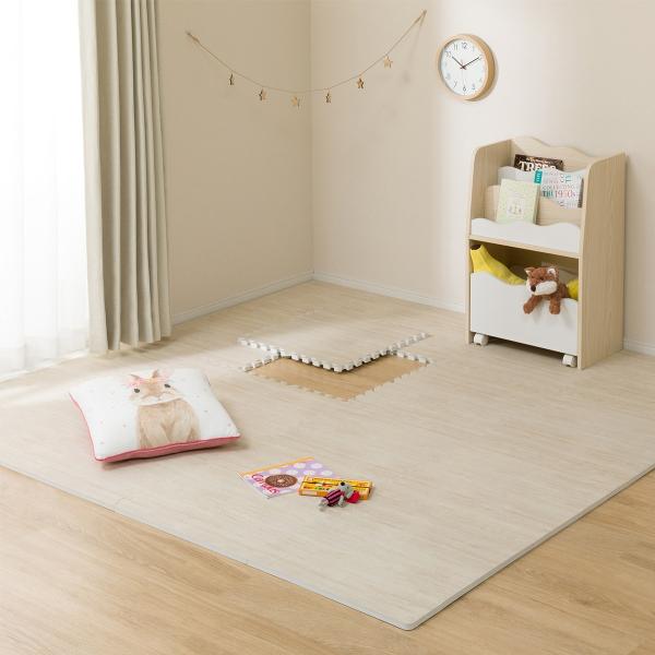ナチュラルでインテリアにも合わせやすい大判の木目調のジョイントマットです。クッション性が高くキズ・衝撃に強い素材を使用しており、ノンホルムアルデヒドで小さな子供のいる家庭にも向いています。