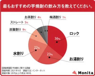 また、おすすめの芋焼酎の飲み方は「ロック」「お湯割り」「水割り」の順でした。芋焼酎好きの方はロックで、初心者の方は炭酸割りから挑戦するのがおすすめです。記事の後半では焼酎プロモーターの河野亜樹穂さんにお話を伺っているのでぜひ参考にしてください。