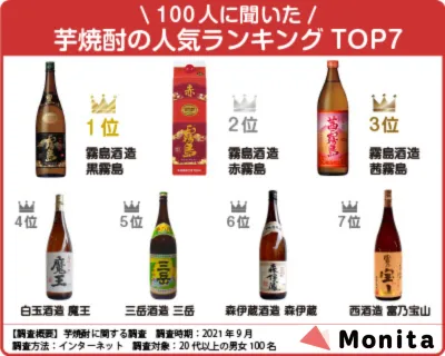 ※調査概要:芋焼酎に関する調査 時期:2021年9月 方法:インターネット 対象:20代以上の男女100名