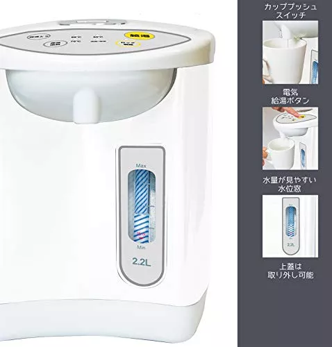 大きめの電動式ボタンで押しやすいうえに、軽く押さえるだけで給湯できます。お茶やお味噌汁などを簡単に作りたいときや、ご高齢の方にもおすすめです。象印やタイガーはどっちも高くて手が出ない方にも嬉しいお手頃価格になっています。