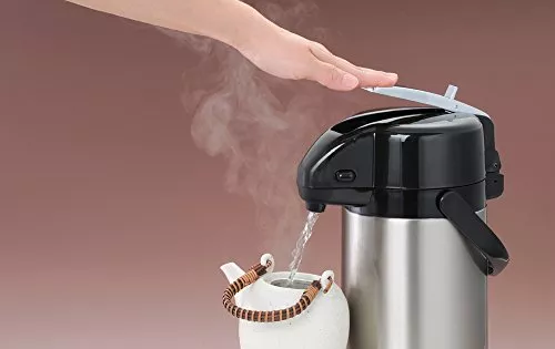 エアー式とは、ふたに設けられたプッシュプレートを押すことでお湯を出す方式です。空気圧を利用しているため、電気が通っていなくても給湯ができます。オフィスやイベントなどで、沸かしたあとに持ち運んで使えるのもポイントです。