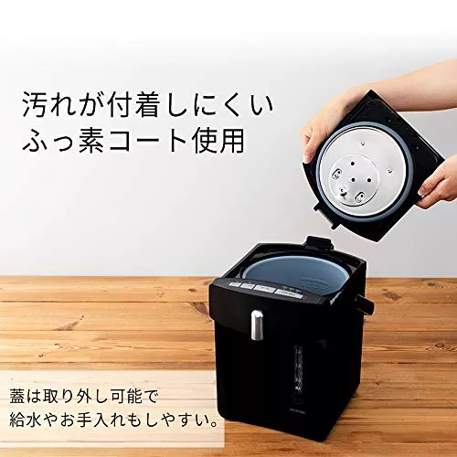 アイリスオーヤマの3Lマイコン式電気ポットは、保温温度を4段階で調整でき、必要な温度のお湯をすぐに使用可能です。自動ロックと空だき防止機能で、小さなお子さまがいるご家庭でも安心して使えます。