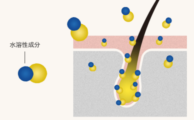 チャップアップには育毛を促進するために、高速(※)浸透技術である「TEN-DDS」が採用されています。これは水溶性成分を効率的に皮膚の角層と親和させたり、経皮吸収を向上させたりする働きをするので、有効成分が効率的に皮膚の角質層まで浸透します。