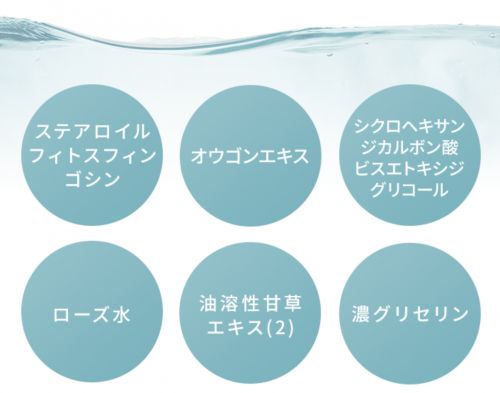 ※2 ステアロイルフィトスフィンゴシン、天然ビタミンE、乳酸ナトリウム液、ローズ水、水添大豆リン脂質、グリセリン 、BG、1,2-ペンタンジオール