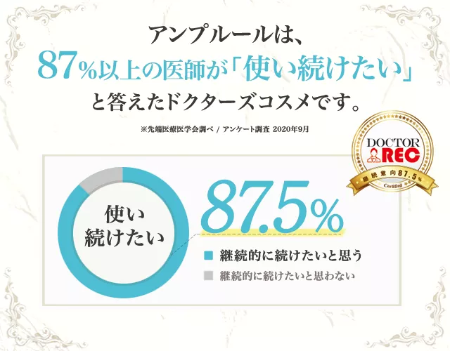 【満足度】アンプルールは美容専門家からも高評価!87.5%※が使い続けたいと回答