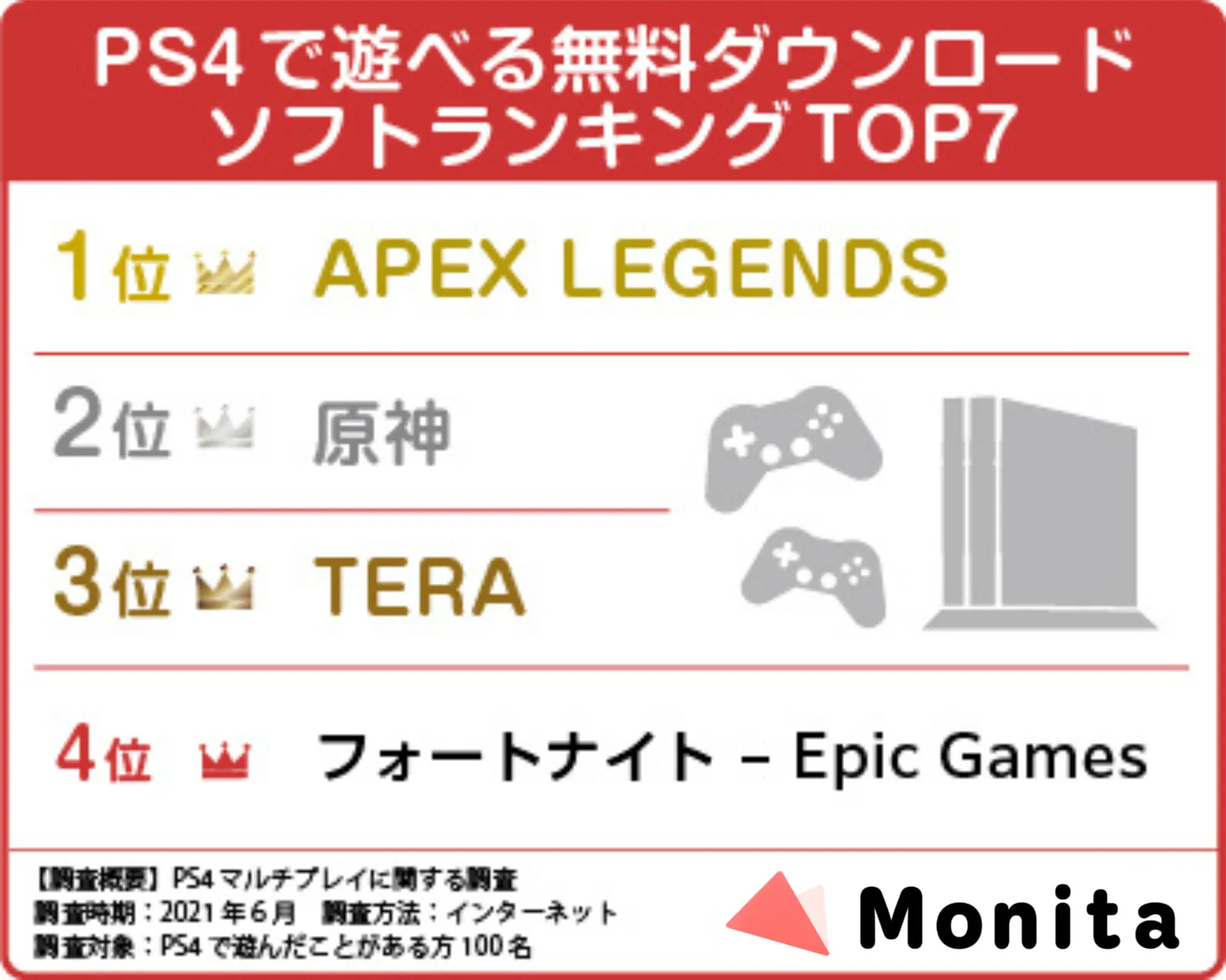 「好きなマルチプレイのジャンル」を100人にアンケートした結果、「アクション(FPS/TPSなど)」が票を獲得しました。「PS4で遊べる無料ダウンロードソフト」のアンケートでも、「APEX LEGENDS」が支持を集めました。