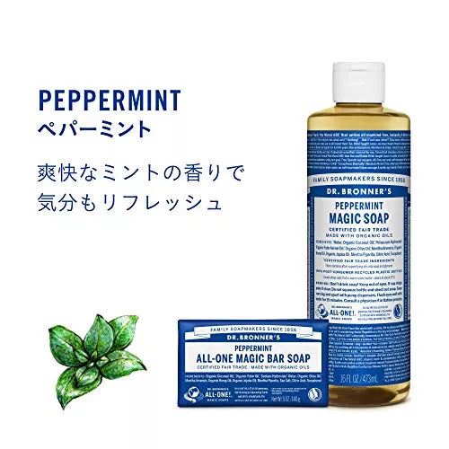 マジックソープバー ペパーミント ドクターブロナー | ![]() | Amazon楽天ヤフー | ミントの爽快な香りと清涼感が楽しめる人気固形石鹸 |