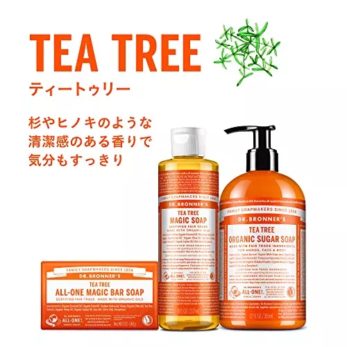 マジックソープ ティートゥリー ドクターブロナー | ![]() | Amazon楽天ヤフー | さっぱりした使い心地がドンキや薬局でも人気のティーツリー |