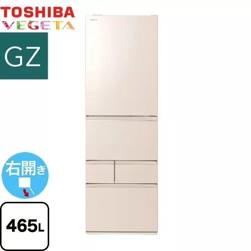 東芝冷蔵庫の最高位モデルFZシリーズのベジータGR-S510FZは、フレンチドア(観音開き)で容量508Lの4人家族向けの冷蔵庫です。もっと潤う摘みたて野菜室・氷結晶チルド・切り替え冷凍室・アプリ・USBポートなど機能性も充実しています。