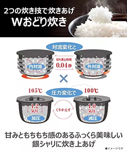 「可変圧力おどり炊き」はお米をもちもちに仕上げてくれます。IHで内釜を加熱し、さらに加圧して水の温度を100度以上に高温化させて炊き上げる技法です。