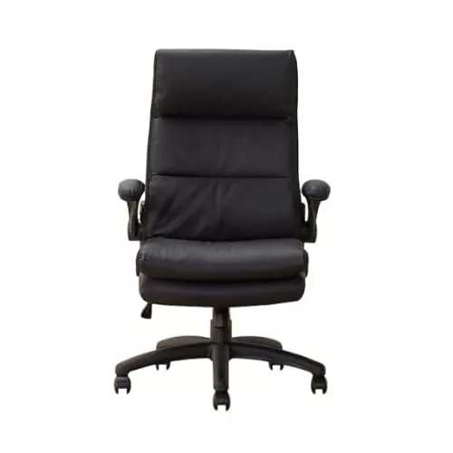 頭まで支えてくれるハイバックチェアです。材質はお手入れがしやすい合成皮革となっていて、体を包み込むように立体的に作り上げられています。クッション性もあるので、長時間座っても疲れない椅子をお探しの方におすすめです。