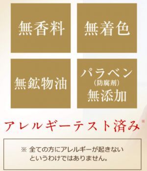 コラリッチ EX は無香料・無着色・無鉱物油・パラベン(防腐剤)がフリーなのも特徴です。肌が敏感な方でも使いやすく、アレルギーテストも行っています※。