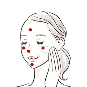 コラリッチ EX ブライトニングリフトジェルを直径1.5cm程手に取り、両ほほ・おでこ・鼻・あごの上にのせます。乾燥しやすい部位には少し多めにつけるのがおすすめです。